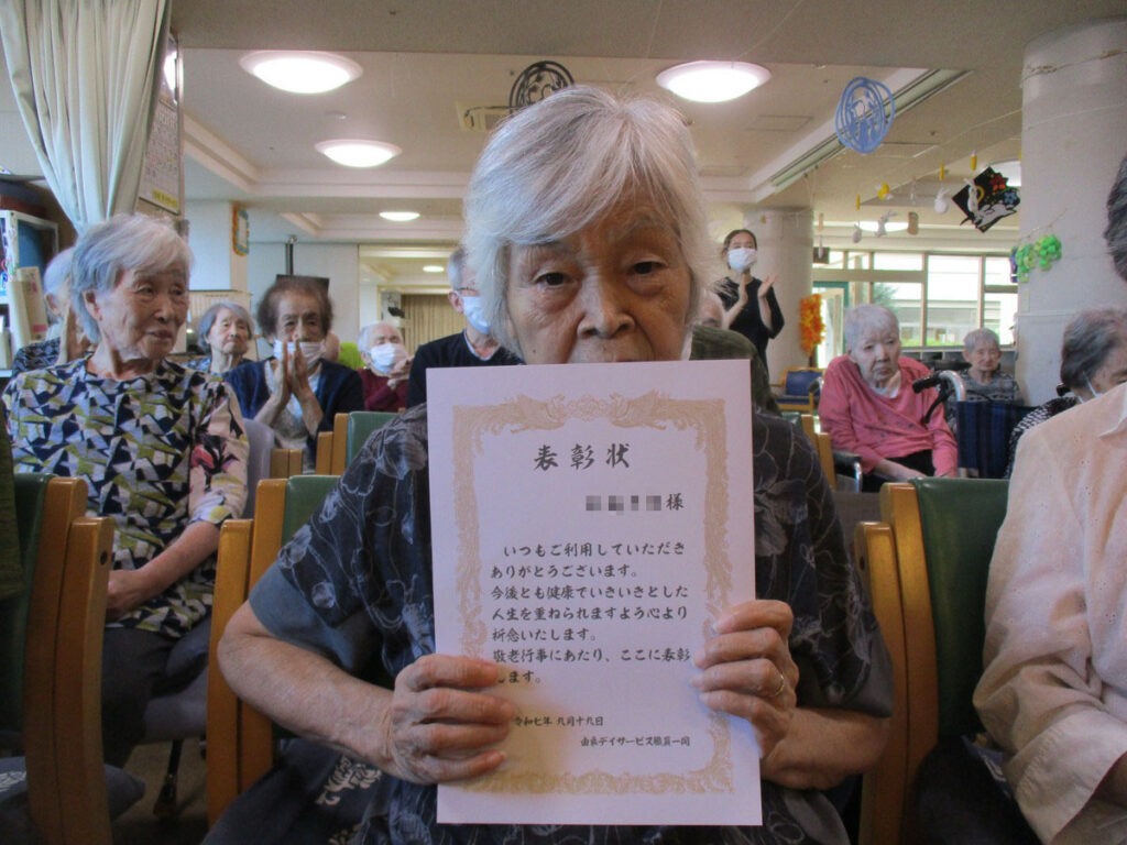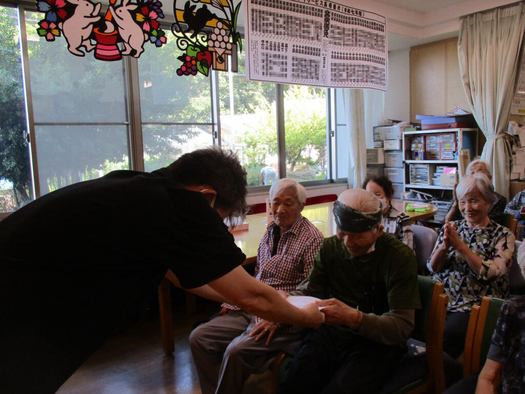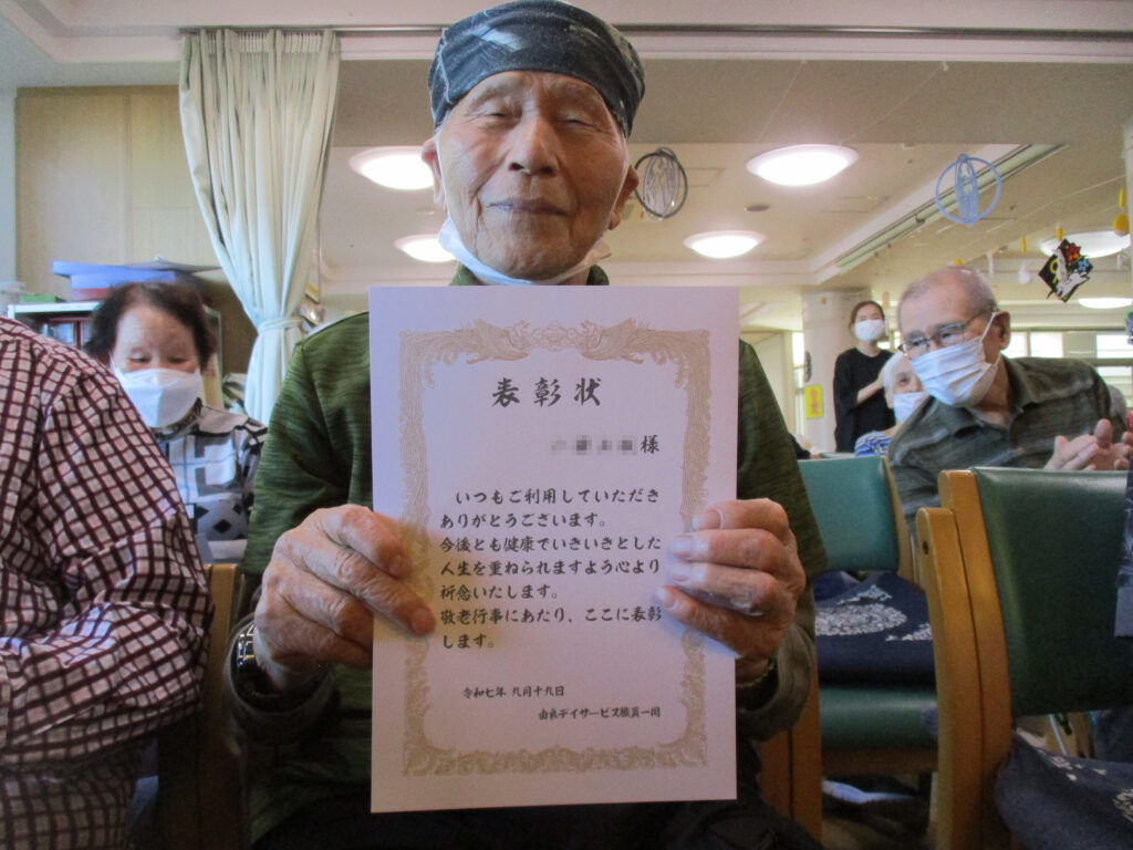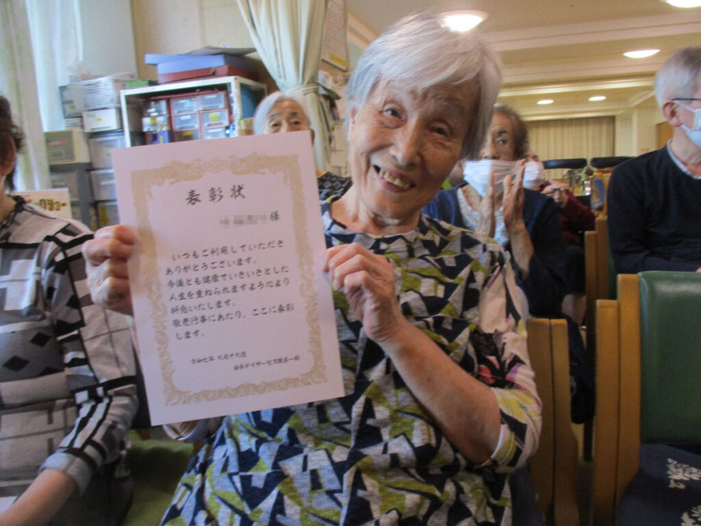 デイサービス 敬老行事 デイサービス 敬老行事 2025年9月23日 sumototcbn デイサービスでは敬老会が行われました。 利用者の皆さんに表彰状が渡されます。 記念撮影です。 その後マジックショーを開催 さあ、百歳目指してデイサービスで頑張りましょう