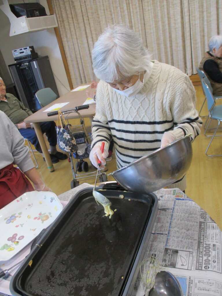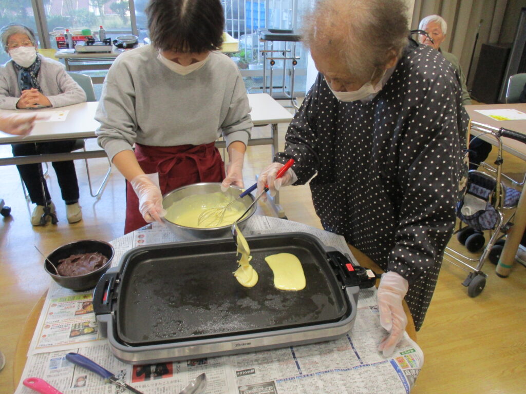 まずは、あん巻き作りです。利用者の方と一緒に皮から作っていきます。