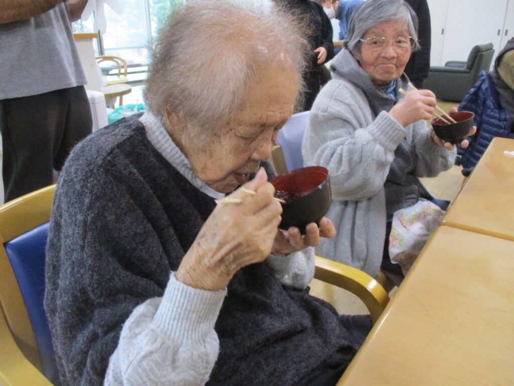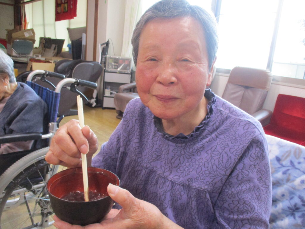 甘いぜんざいに利用者の皆様もホッと一息です。