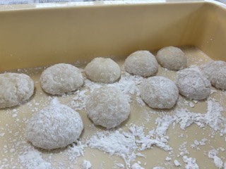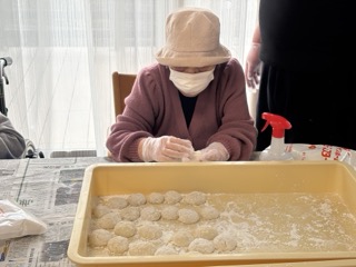 粉をつけながら、ひとつひとつ丁寧に丸めてくださる手つきはとても慣れたもので、周囲から「きれい!」と声が上がっていました。