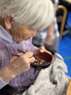 小豆の甘い香りと、やわらかなお餅に「おいしい」「あったまるね」と、皆さまほっとした表情で召し上がられていました。