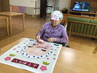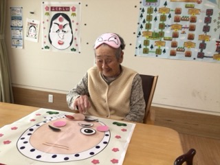 施設内では福笑いも行いました。