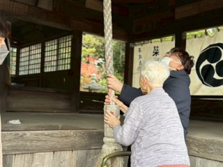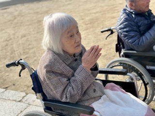 澄んだ空気の中、手を合わせて静かに願いごとをされる入居者様。