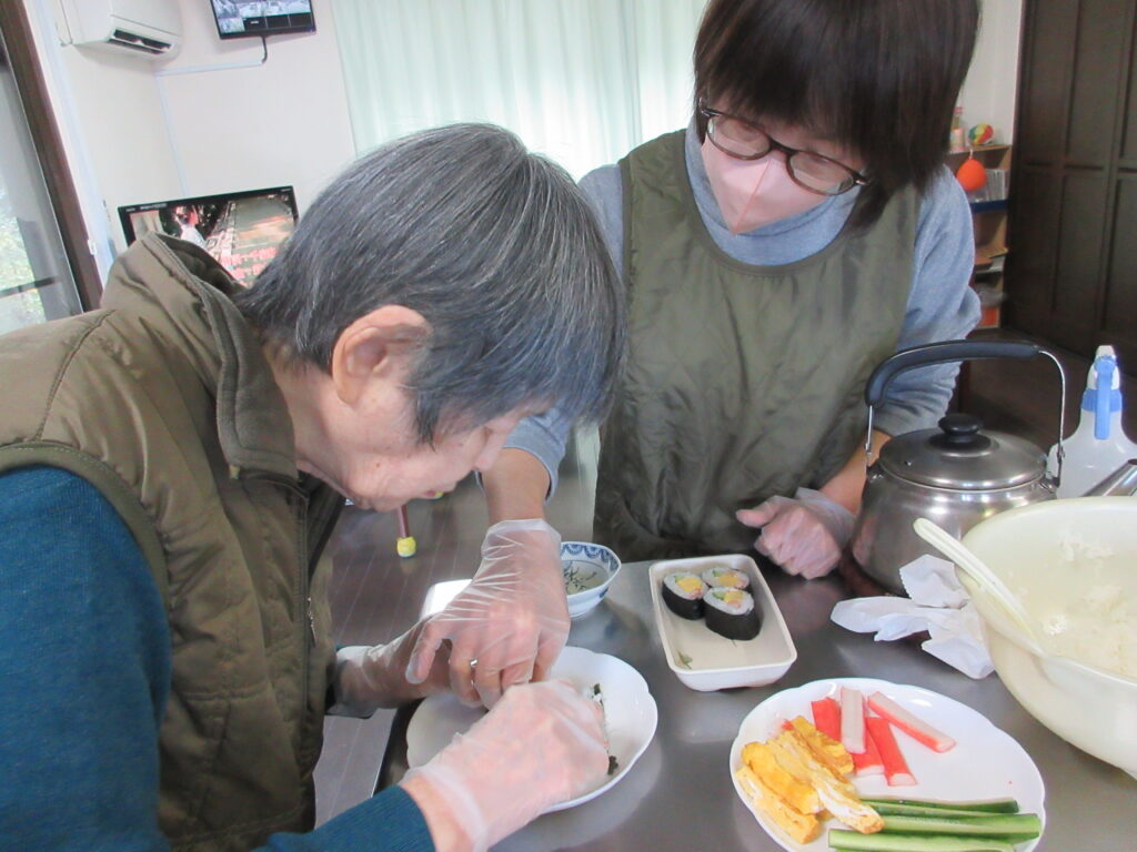 天川たちばなプラス 『節分行事』 天川たちばなプラス 『節分行事』 2026年2月7日 sumototcbn 節分行事として、節分にちなんだゲームを行い、利用者同士や職員との交流を深めることができた。 昼食には、巻き寿司と自分で巻いた手巻き寿司を食べていただいた。 終始、和やかな雰囲気の中、節分行事を楽しんでいただいた。