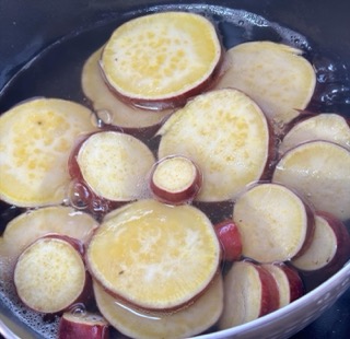 さつまいもは細かく刻み、ほくほくとした食感を大切に。
