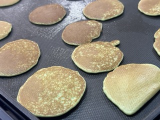 ホットプレートに丸く流した生地が、じんわりと膨らみ、きつね色に焼きあがっていきます。