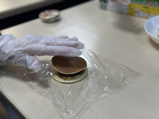 今回の行事では入居者様と一緒にどら焼き作りを行いました。