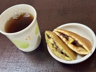 プレーンと抹茶、2色のどら焼きがずらりと並び、まるでお店のような仕上がりになりました。